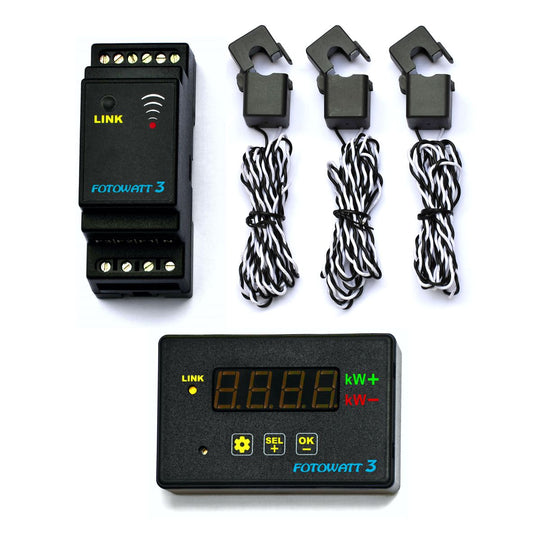 V1- FOTOWATT 3 wattmetro wireless trifase per fotovoltaico con allarme sovraccarico