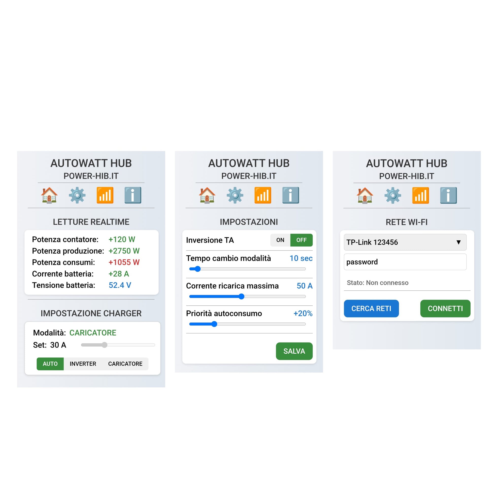 La centralina AUTOWATT HUB 2 permette di dirottare l'energia in eccesso diurna del tuo impianto grid-tie all'interno di una batteria di un impianto off-grid che verrà quindi riutilizzata in automatico la sera per alimentare i carichi domestici.