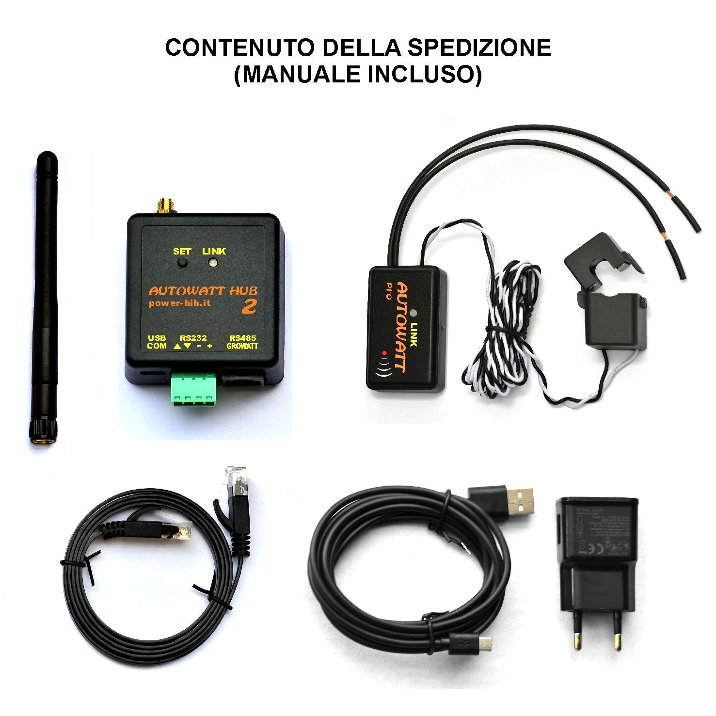Il sistema è composto da una trasmittente wireless che va installata sotto al contatore generale (scambio sul posto) e da una centralina che si collega direttamente ad un inverter modello Growatt SPF 6000 ES Plus.